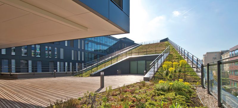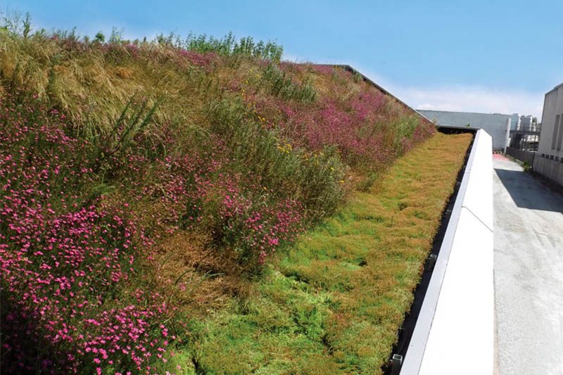 Los sistemas AcroPack y Acromat permiten realizar una cubierta verde con inclinación de hasta 200%: