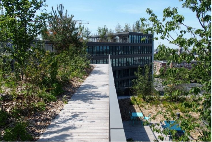 El edificio Biotope de Lille es un buen ejemplo de aquello con sus 150 arboles de 8 m a 10 m de alto, 600 arbustos y 15000 plantas repartidos sobre 3000m2 de terrazas